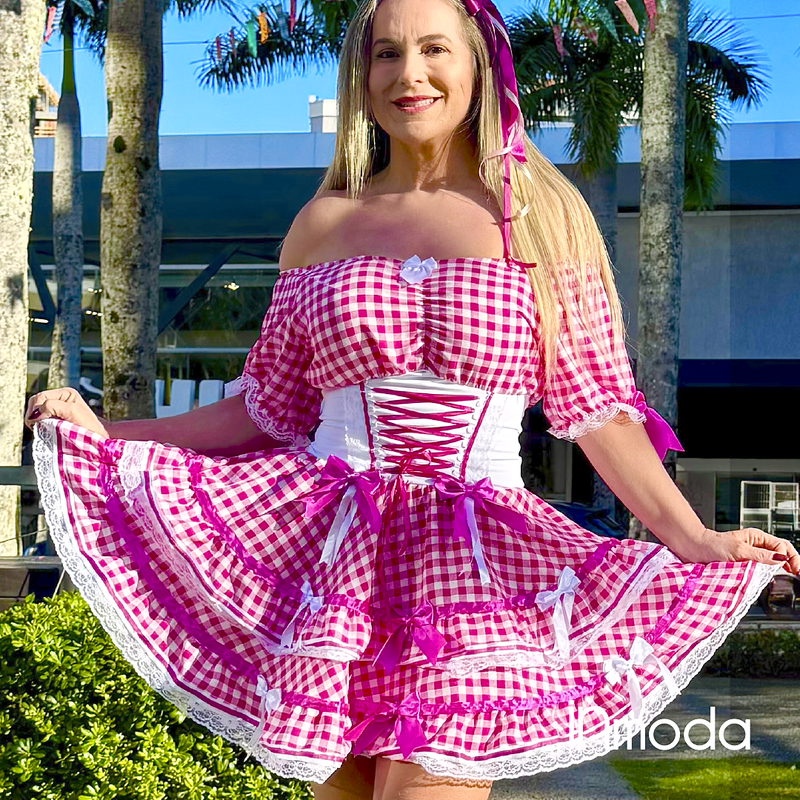 descricao vestido branco e rosa 1descricao vestido xadrez vermelho e branco 2descricao vestido xadrez vermelho e branco 3descricao vestido branco e rosa 4Cuidados com a Peca e Tabela de Medidas